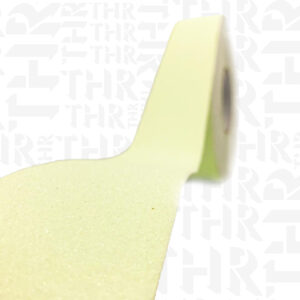 Fita antiderrapante com dorso em PVC revestido com grãos antiderrapantes e adesivo de alta performance.