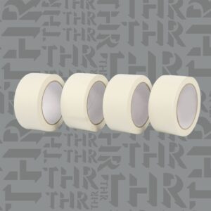 Fita de papel crepado com adesivo hotmelt à base de borracha e resina sintética de alta aderência.